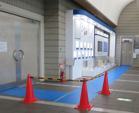 せっかくのガラス張りの部分にベタベタと貼り紙をして中が見えないようにしている。