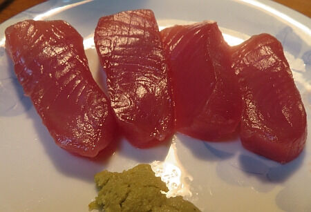 マグロは最近、ネットで話題の塩マグロに。