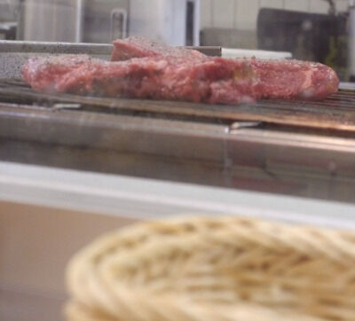 注文すると、ステーキがグリルの上に乗せられる。