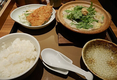 待機していると、隣のおじさんのカキフライ定食が到着。