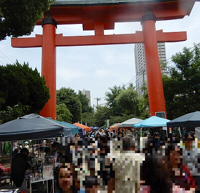 でも、その前に庭の神社でやってる手づくり市というイベントの調査。