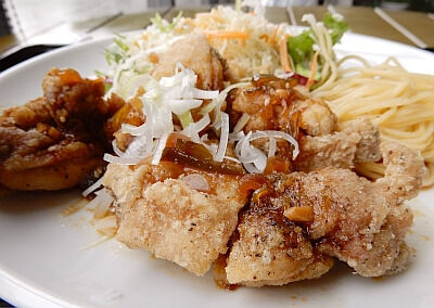ちょっと贅沢をして鶏天まねきそばである。