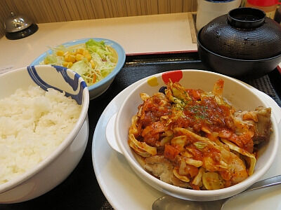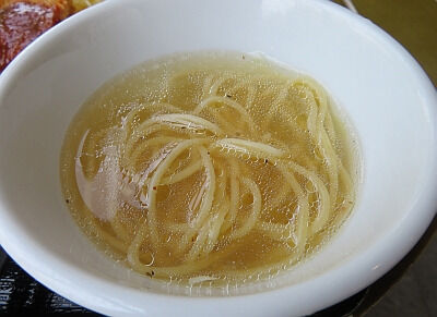この店の定食には決まって冷めたスパゲッティが添え物として出てくるので、僕は決まってスープに浸してスープスパにして食べることにしている。