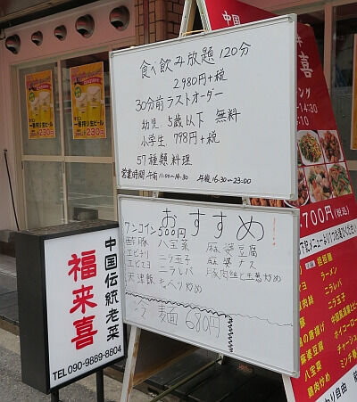 前よりは立派な看板で食べ飲み放題の告知してるなあ。