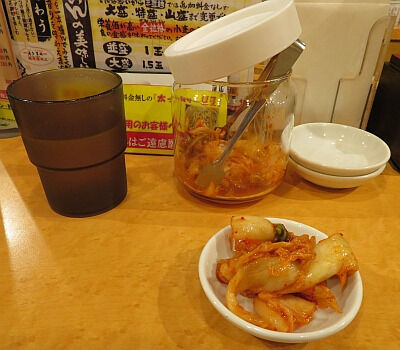 この店はキムチが無銭で食べ放題。