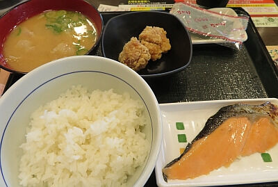 なか卯さんなど牛丼屋さんでは塩鮭ではない鮭を出しているのかな?