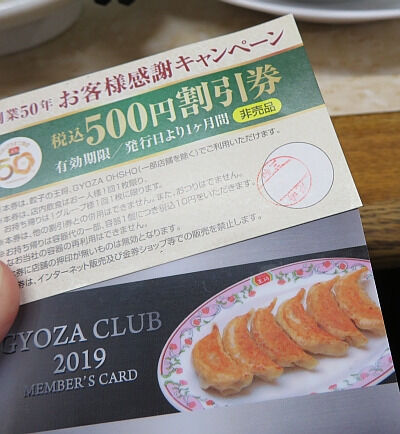 GYOZA CLUB 2019とそれを貰った時に付いてきた割引券。