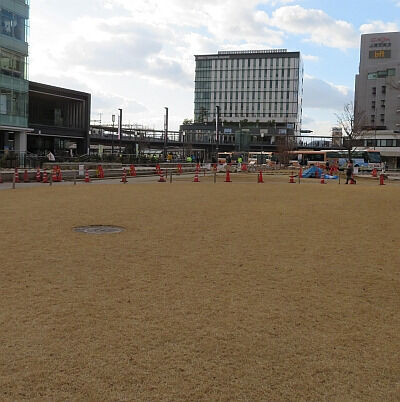 駅前の人が集まる広場を天然芝にするなんて、先見の明の無さがよくわかるよねw