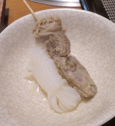 シャモはちゃんとした地鶏っぽい感じの食感でこれはなかなか食べられない良いものだと。