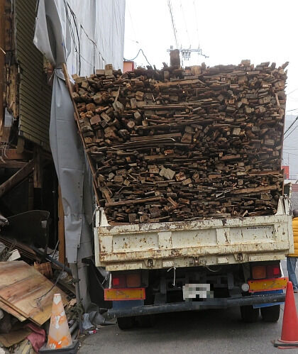 これぐらいなら大丈夫なのだろうか。僕はトラックに木材を積み込んだ経験がないので良く分からないが、本能的にこれはヤバいという感じがする。法的はセーフなのかな?