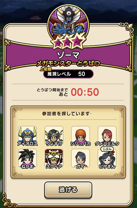 既報通り月曜日からゾーマが出現とのこと。