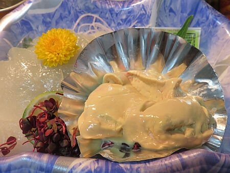 季節外れの為か脂の乗りは薄目だが、やはりかわはぎの肝は美味い。