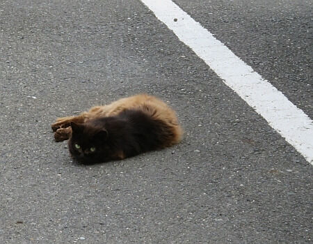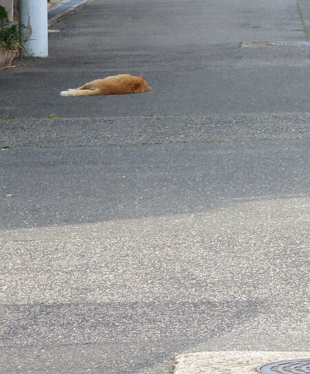 日陰のアスファルトが冷たくて気持ちが良いのかな。
