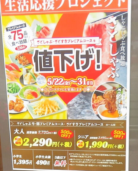値下げはさとしゃぶ・さとすきプレミアムコースのことらしい。
