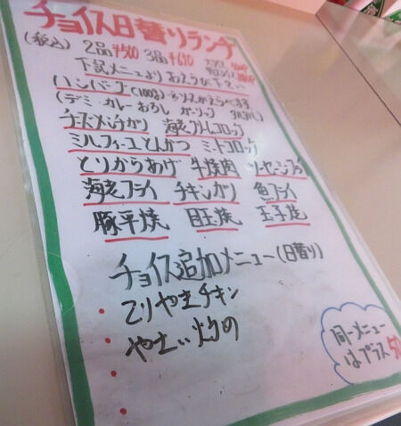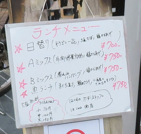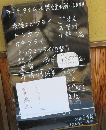 以前は店頭に日替わりのメニューが掲示してあったように記憶しているが、今回は見当たらなかった。