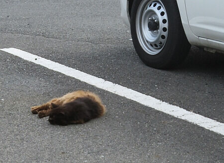 車はにゃんこの天敵なのににゃんこは駐車場が好きなようで。
