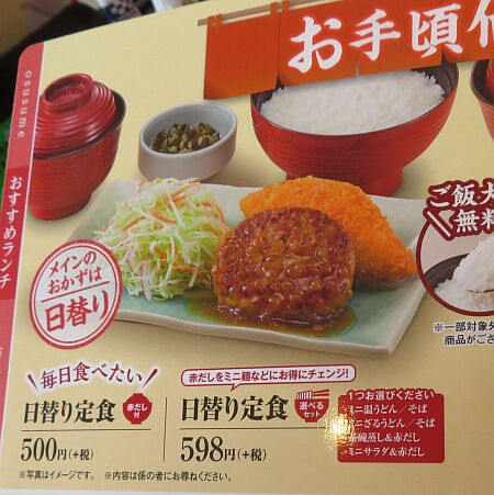 麺類の類を省くことにより値下げを達成した日替わり定食である。