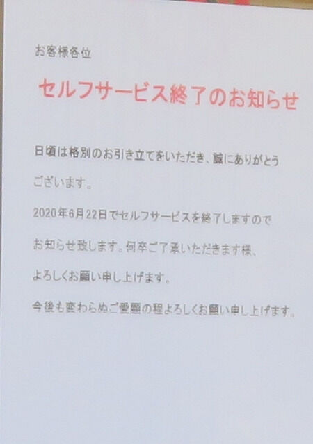 先日、始めたばかりのセルフサービスがもう終了してる。