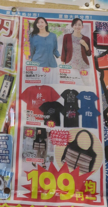 夏休みに見掛けたチラシがまだ貼ってあったのでこのハイセンスなTシャツが残っていたら買おうかと思って売り場をのぞいてみたが、それらしき売り場はあるが普通のTシャツしか残っていなかった。