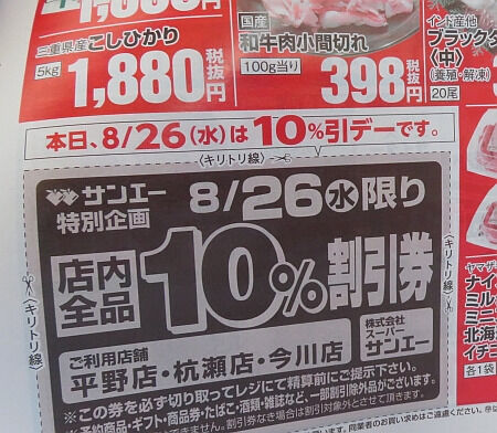 今週は10%割引のターン