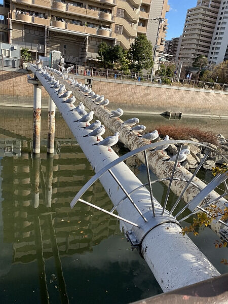 望遠の一番手前のユリカモメさんを鳥なだけにトリミング。
