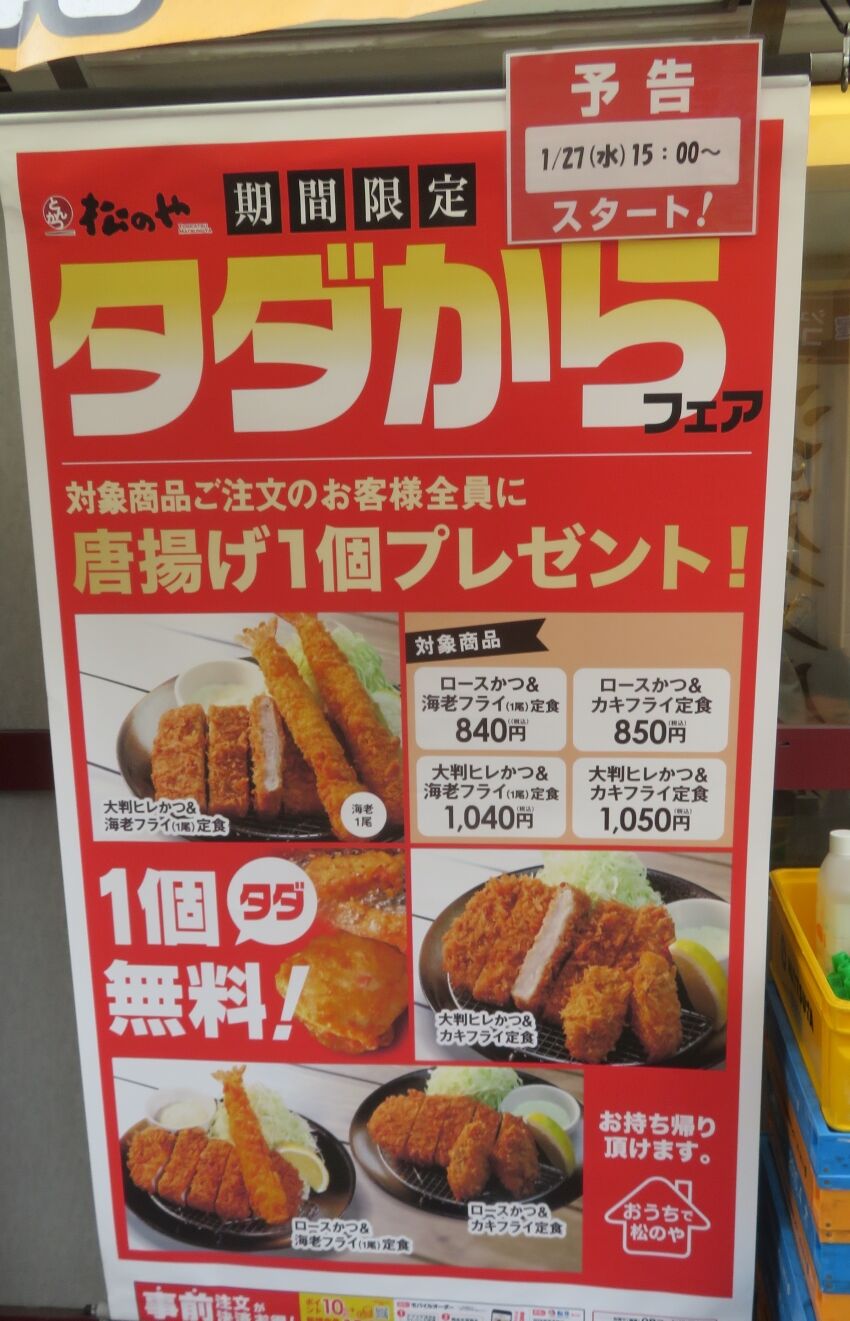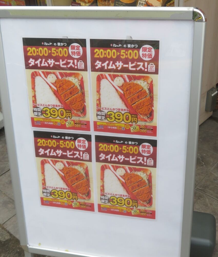 松屋の隣の三代目鳥メロさんの店先のワタミの宅配お弁当のご案内