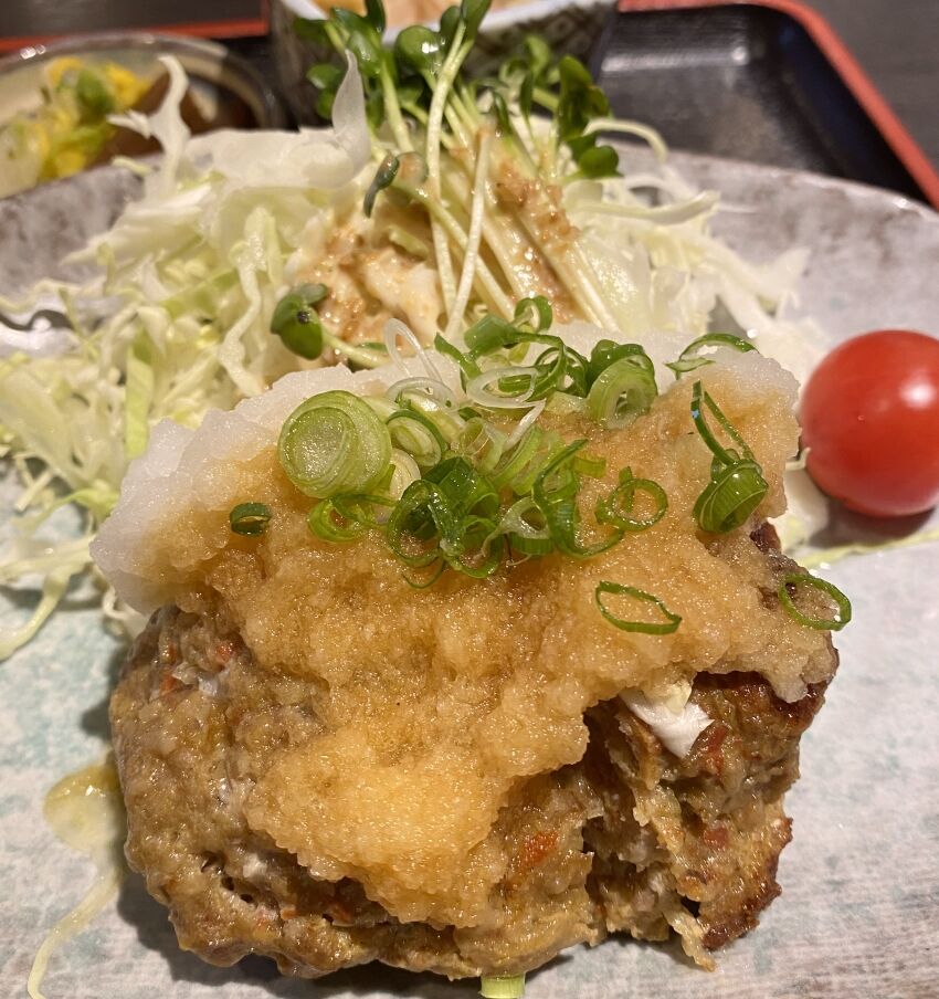 なかなか非常識なサイズ感のメンチカツで嬉しくなってくる。