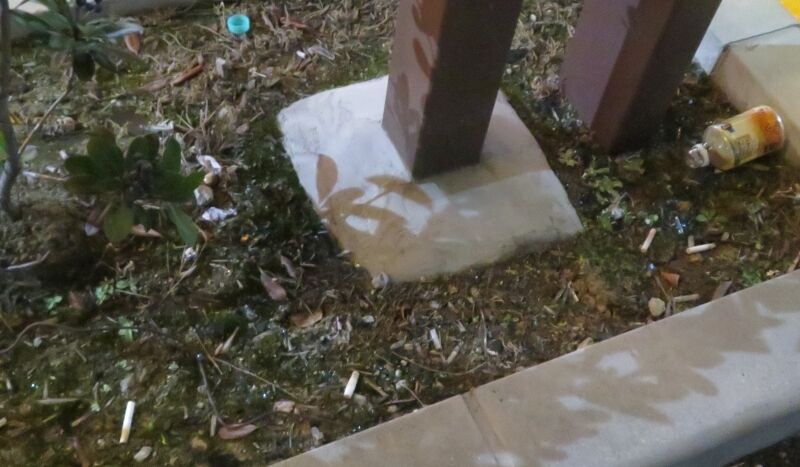煙草の吸殻がたくさん捨ててある。