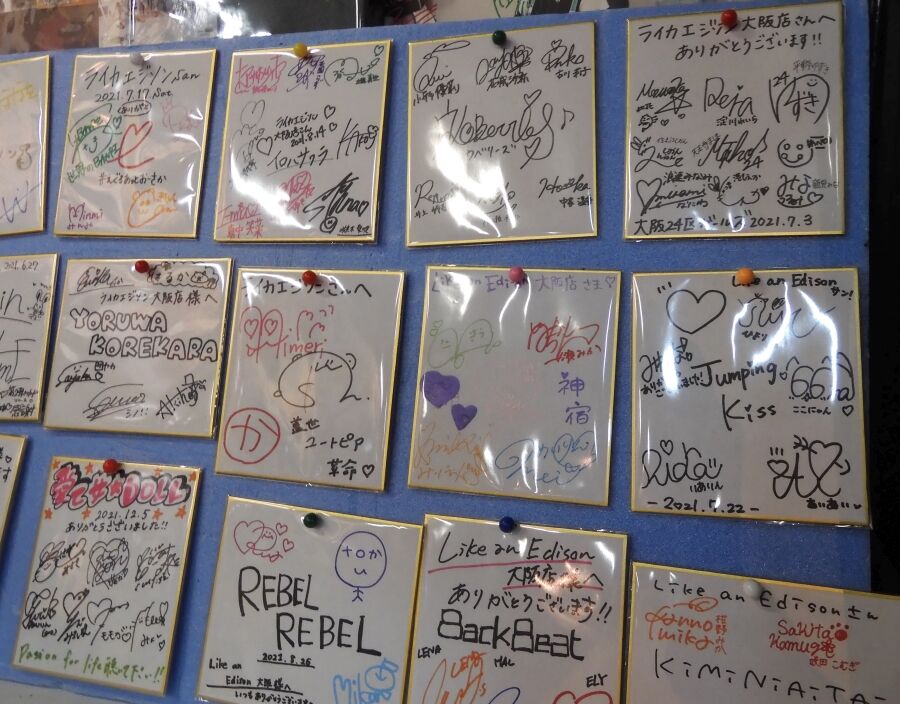 左手にはこれまでのイベント出演者のサインが飾られている。
