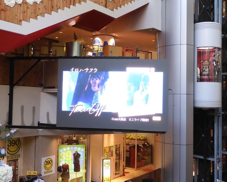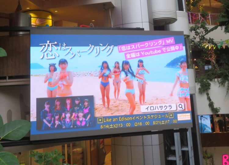 大型ビジョンにイロハサクラさんのCMが表示された。