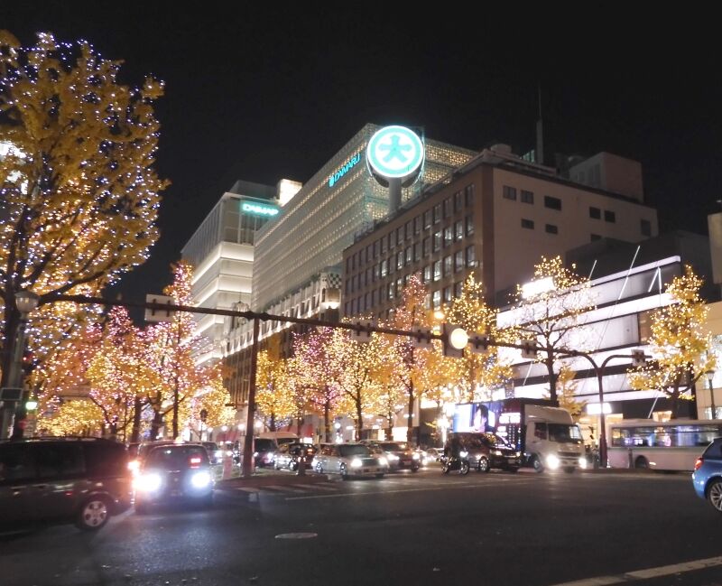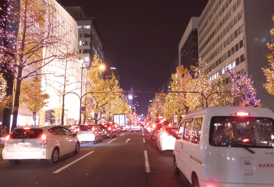 御堂筋のライトアップを撮影