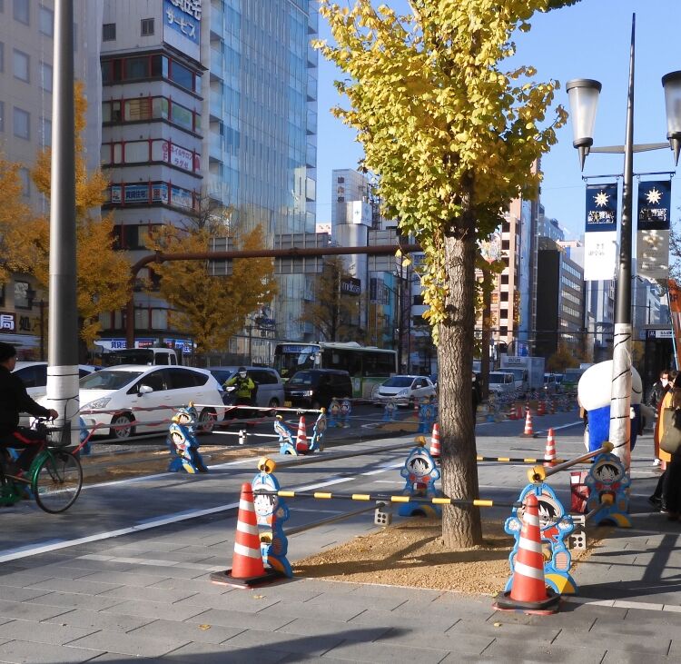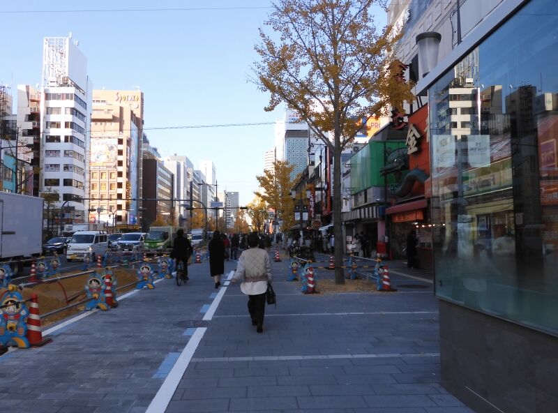 歩道を広げる工事を行っているようだが現状ではその途中らしくその広さを生かせている状態ではない。いつ頃完成するんだろうね。