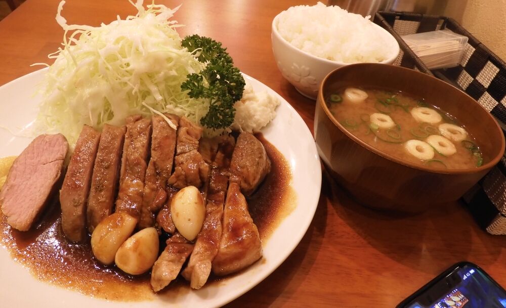 トンテキは非常に美味しい。お店でトンテキというものを食べるのはたぶん今回が初めてだがこれは大いにリピ有だね。