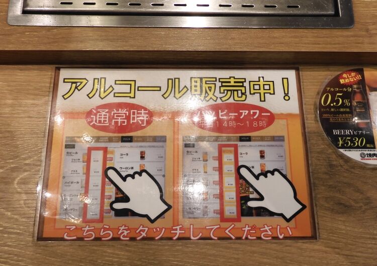 アルコールも良いかなあと思い熱心に「こちらをタッチしてください」と書かれている部分をタッチしてみたが特に何の反応もなくアルコールは出てこなかった。