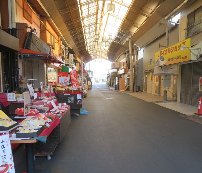 商店街はまだお正月ムードで閑散としている。