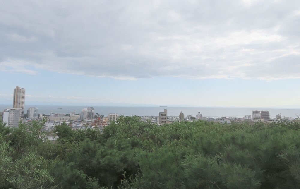 食べ終えて海を見ると大きな船が見える。